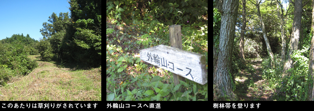高森町中心部の豆塚から下山後、南外輪山の旧高森峠から取り付く、御成山〜高森峠三角点峰に登ります。今ではあまり通る車もなく荒れ気味の九十九曲を走行、南外輪山にいくつもある峠のひとつ旧高森峠へ。ここからは南外輪山の稜線を通る九州自然歩道を歩くことになります。